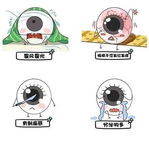 2.有剧烈的异物感、眼红、眼刺痛、畏光、流泪等刺激症状。