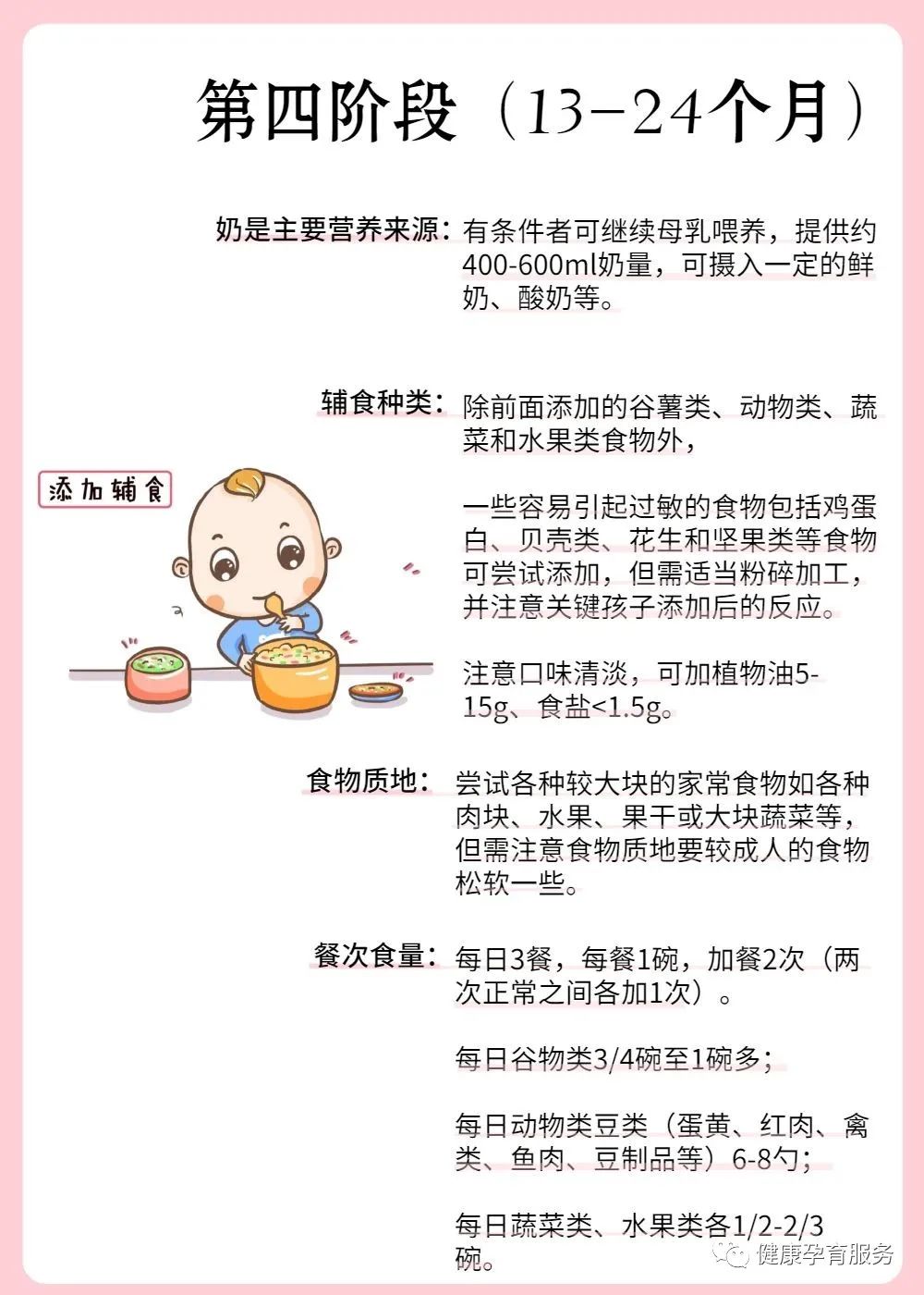 按照儿童对辅食接受和摄入的一般进程,把辅食添加划分为4个阶段: