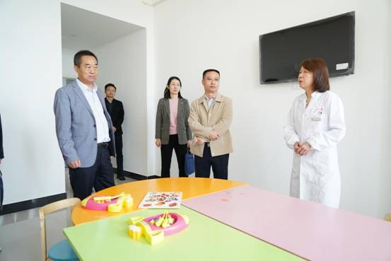 调研组一行深入儿童康复中心,科室负责人对工作开展情况进行了详细介绍和专题汇报,随后又实地察看了康复环境、设备配备、筛查收治、政策宣传及落实情况,并与康复技师、家长等进行亲切交谈,特别是对具有特色亮点的“康医教”结合、“全托化、半托化”儿童康复服务模式给予了高度评价。