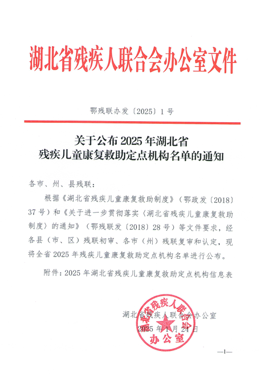 “湖北省残疾儿童康复救助定点机构”