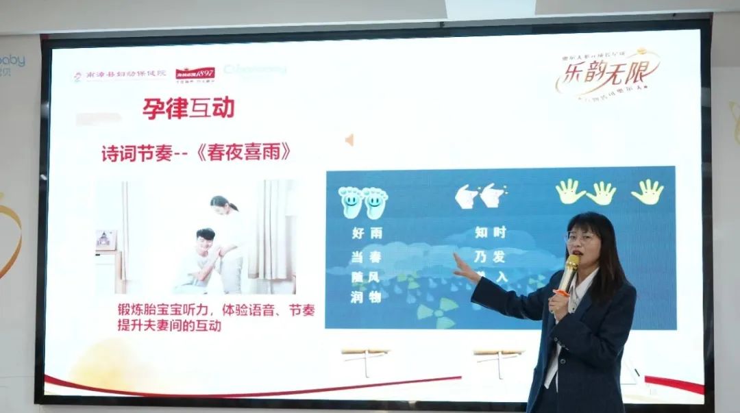 南漳县妇幼保健院副院长涂风琴为活动致辞,她表示,南漳县妇幼保健院作为湖北省规范孕妇学校合格单位和南漳地区奥尔夫音乐胎教基地,希望能通过寓教于乐的方式来传播优生优育理论,用音乐来搭建孕妈妈和宝宝之间沟通的桥梁,给大家带来不一样的胎教感受。希望每一次活动都能分享更多的科学育儿知识,传播正确的生育观念,让每一位宝宝都能在爱与关怀中茁壮成长。