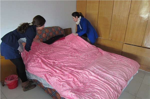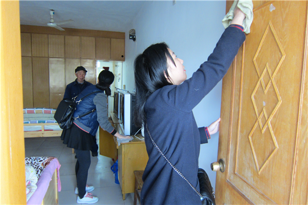 青年志愿者为老人整理房间